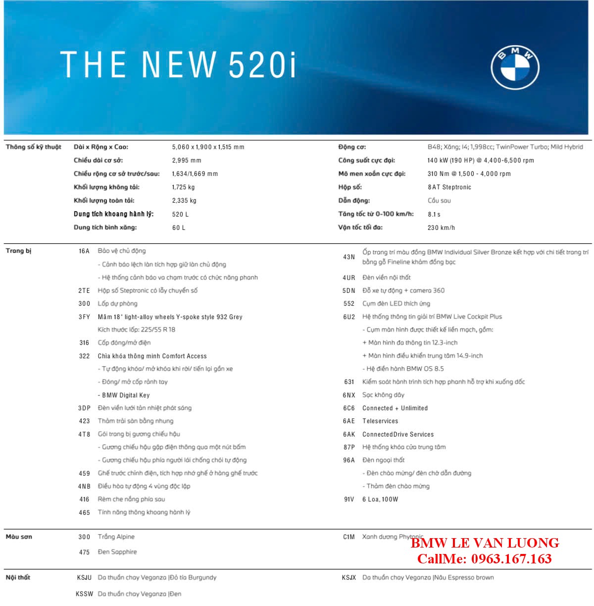 BMW 520i là sự lựa chọn hàng đầu trong phân khúc sedan hạng sang cỡ trung nhờ sức mạnh vượt trội, cảm giác lái êm ái, cabin thiết kế sang trọng, tích hợp các tính năng an toàn hàng đầu.