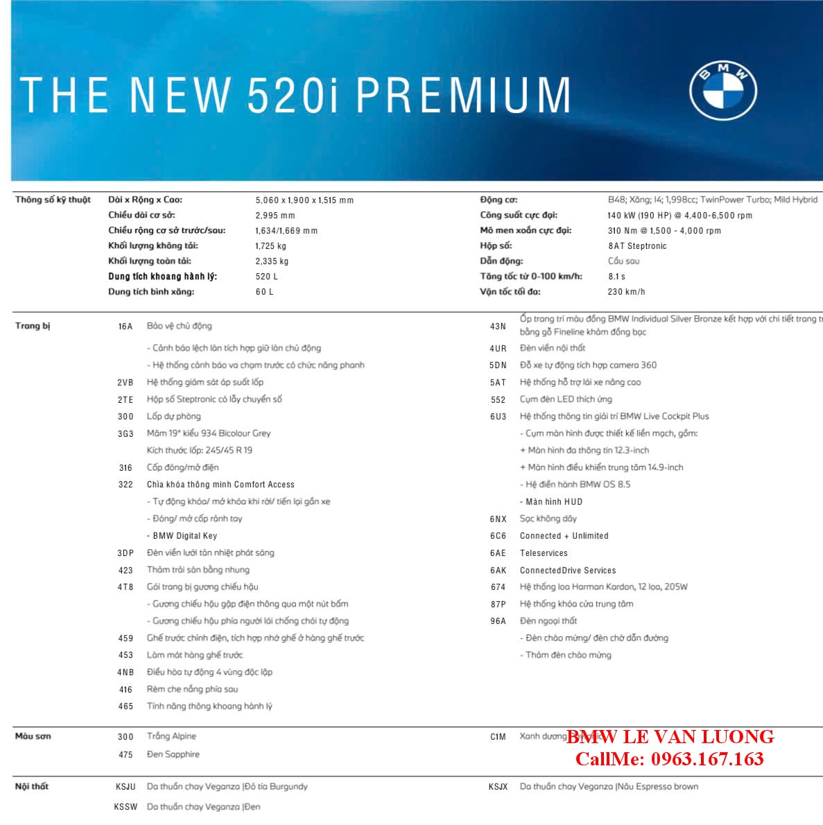 Thông Số Kỹ Thuật BMW 520i Preimum